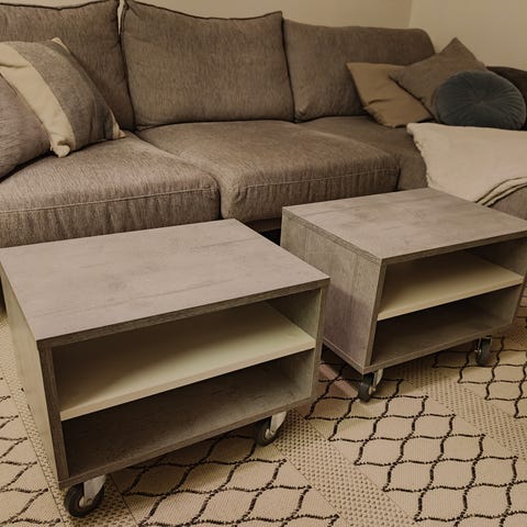 Pikkupöydät kaksi kappaletta yhteishinta 10€. Jyskin Nybo, olleet käytössä sohvapöytänä.