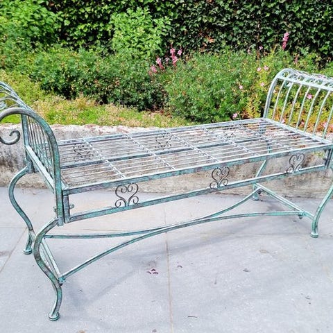 Tämä on upea taottu rautainen penkki. Penkki on valmistettu taotusta raudasta ja kauniisti viimeistelty ruskealla patinalla. Mitat ovat seuraavat (+/-):