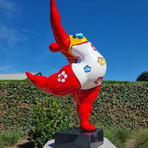 Kauniisti suunniteltu tanssiva nainen marmorijalustalla. Nykyaikaisesti suunniteltu marmorijalustalla. Mitat ovat seuraavat (+/-):