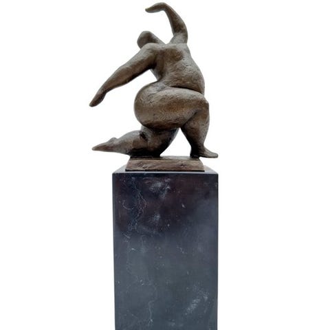 Koristeellinen pronssinen veistos nuorukaisesta sikaarin kanssa. Keskiajan muotoilu ja tyyli. Tämän pronssisen taideteoksen mitat ovat seuraavat (+/-):