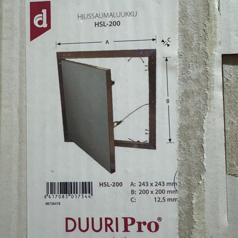 Myydään kaksi Duuri Pro HSL- 600 hiussaumaluukkua. Kiinnitysruuvit puuttuvat paketeista.