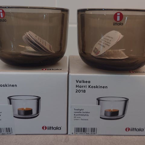 Kaksi käyttämätöntä Iittalan Valkea -kynttilälyhtyä edullisesti! Sävy turkoosi, halkaisija 60mm.