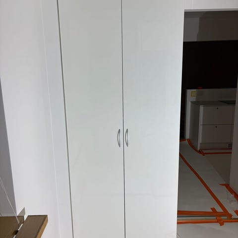 Kaksi Ikea Brusalin tyylistä kenkäkaappia (en ole varma millä nimellä tätä on myyty) valkoisen puun väristä kaappia. Seinään kiinnitettävät ja vetimiksi vaihdettu Juvin rengasvetimet. Tule katsomaan, rempan keskellä hankala kuvata. Ollut lasten vaatteille ja sittemmin kengille.
