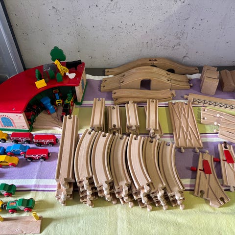 Kassillinen BRIOn junaradan osasia, junia jne. Vanhimmat 20v. Tarkemmin en valitettavasti kerkeä kuvaamaan.
