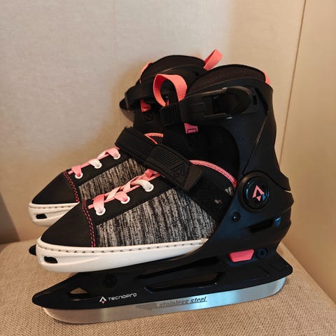 TechnoPro lasten luistimet koko 34. Luistimet ovat mustat ja niissä on pehmeä vuori. Näillä on luisteltu kolme kertaa eli ovat vielä todella hyvässä kunnossa. Jääneet käyttäjälleen pieneksi, myydään seuraavalle luistelijalle! Mukaan kuvan valkoiset suojat!