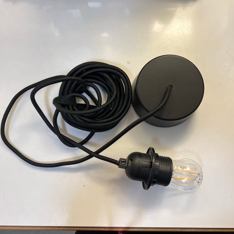 Täysin käyttämättömät alkuperäisissä pakkauksissa olevat HAYn paperivarjostin (60 cm, valkoinen) ja tähän sopiva riippuvalaisimen johtosetti (musta).