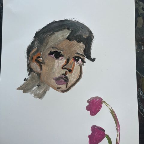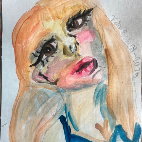 Maaginen potrettimaalaus A3. Taideteos esittää ihmishahmoa, jossa on korostettuja yksityiskohtia ja epätavallisia muotoja.