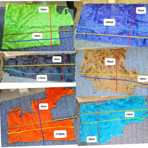 Vaaleanpunainen ja oranssi on Howlfabrics kaupan karvoja, joten hinta niille isompi, koska karvat ovat todella korkealaatuisia.