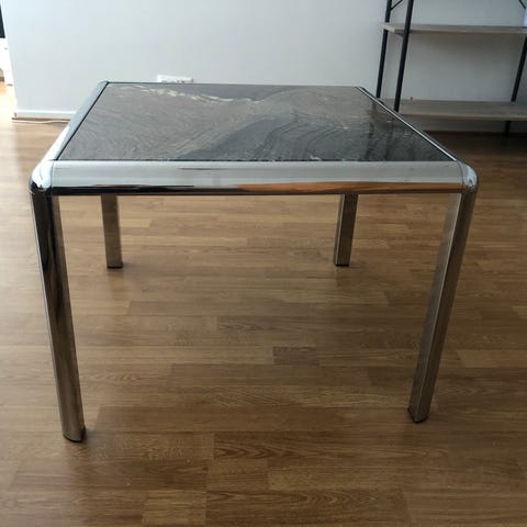 Pöydän pinnassa käytönjälkeä. Voi putsata ja öljytä.