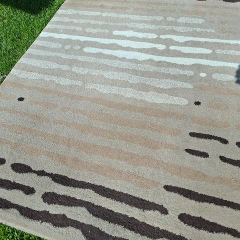 Hyväkuntoinen vaalea/ruskearuutuinen matto. Pesu jää ostajalle.
