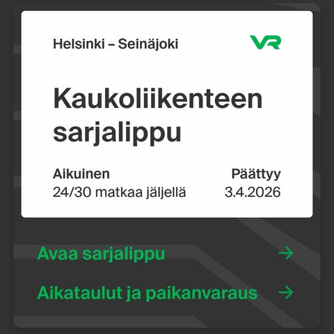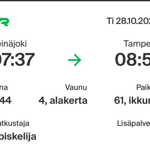 Seinäjoki-Tampere / Tampere-Seinäjoki junalippuja