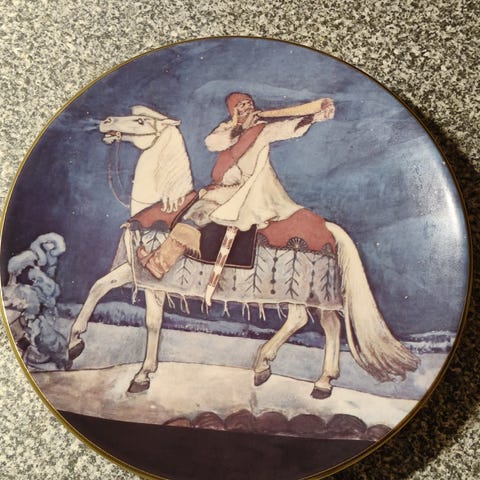 Arabia Akseli Gallen-Kallela Kalevala lautanen, nro 2, Joukahaisen kosto.