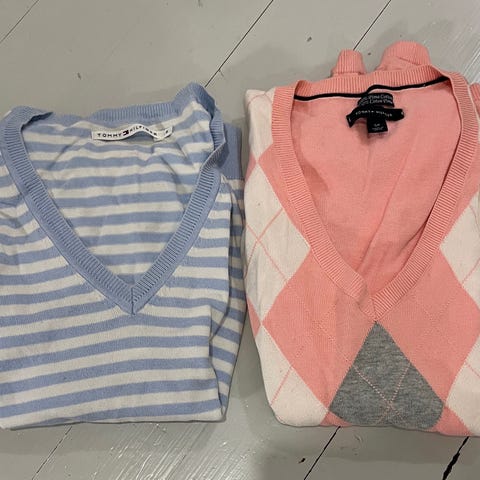 Myydään kaksi valkoista pitkähihaista t-paitaa.