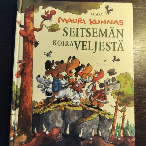 Mauri Kunnaksen Seitsemän koiraveljestä - kirja ruotsiksi. Kansissa useampi jälki, mutta sisältä kuin uusi.