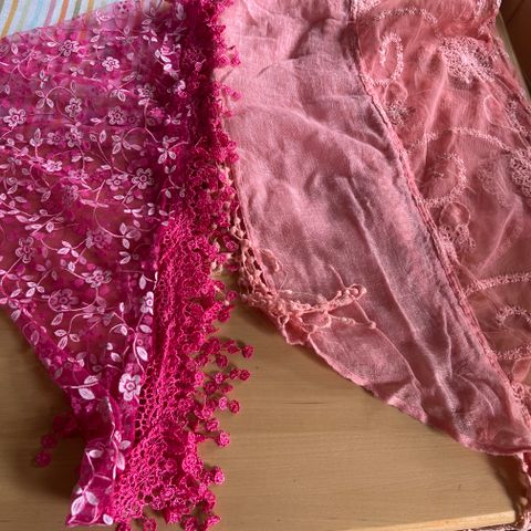 Nahkalaukku ruskea, pieni ,vyölenkeillä, 2 huivia ,lila ja persikka