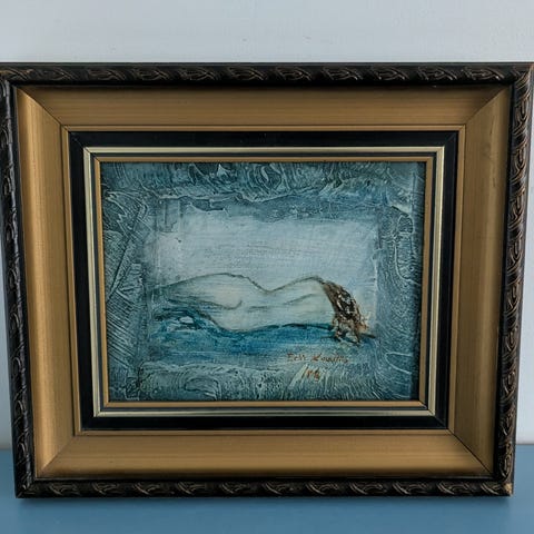Erkki Heikkilän signeeraama Tummat Vaeltajat niminen öljyvärityö levylle. Signeeraus löytyy sekä oikeasta yläkulmasta että takaa.