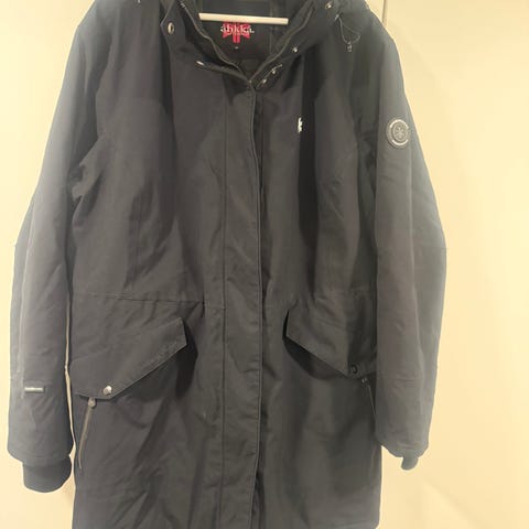 Talvitakki kokoa 52-54 jossa kaksisuuntainen vetoketju ja "nepparilista" sen suojana. Avoetutaskut, huppu ei ole enää tallella.