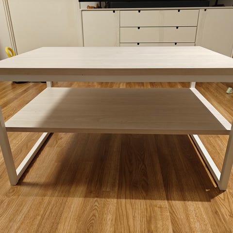 Materiaali: kansi ja hylly 22 mm vahvuista kalustelevyä, jalat maalattu metallirunko
