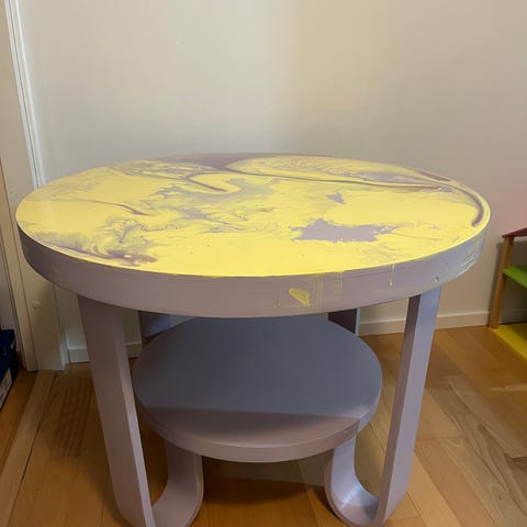Pieni musta pöytä, pinnassa pieniä kohtia jousta maali on lohkeillut.