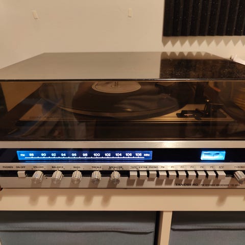 Tänään testattu, kauniisti soi. Vähän rahisee säätimet vahvistimessa ja vasemman puoleisten mittarien valot eivät pala. Levysoitin toimii myös, mutta automatiikka on kovin hitaalla.