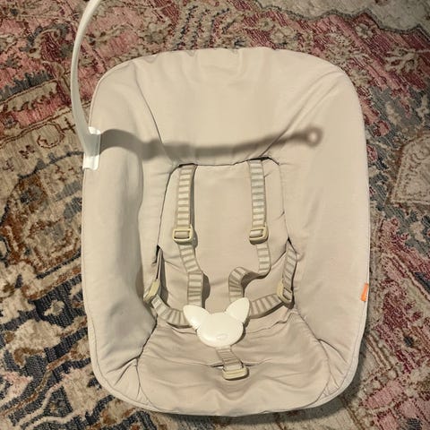 Myydään Stokken Newborn set -istuin, siihen kiinnitettävä lelukaari ja Tripp trapp -tuolin jalkoihin kiinnitettävät kaatumisen eston palat. Istuimen saa säädettyä kahteen eri asentoon ja pehmusteet irroitettua ja pestyä pesukoneessa. Kissatalous, pehmusteet pesty vauvan pyykinpesuaineella.