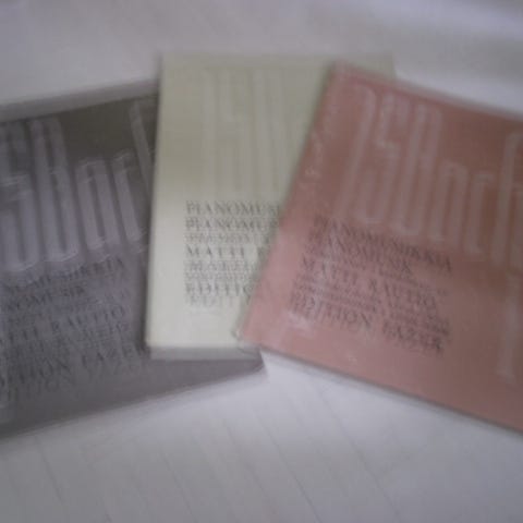 Nuottikirjat pianolle: Bach V (Busoni), Clementi sonatiineja ja Raution toimittama Sonaatista sonaattiin. Kaikki nuotit ovat erinomaisessa kunnossa. Myynnissä Lohjalla, mutta kulkeutuvat omien menojen mukaan Kamppiin, Espoon Ikealle tai Espoon keskukseen. Myynnissä myös muualla. Hp. 10 euroa/kpl (noin puolet ovh:sta)