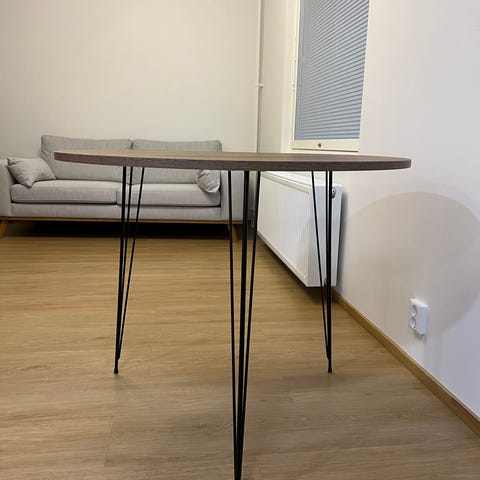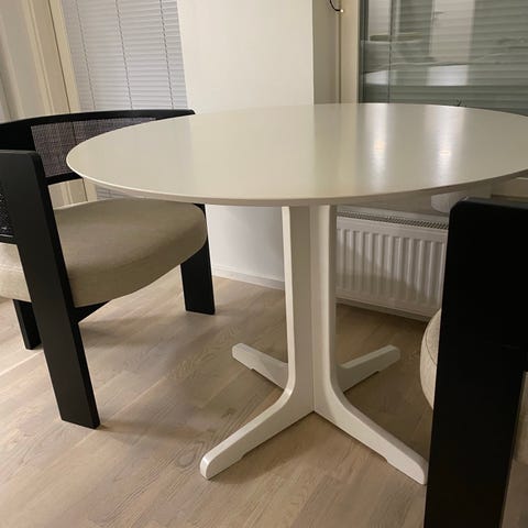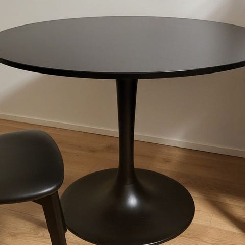 Myydään musta pyöreä ruokapöytä (Masku, malli Apollo). Halkaisija 100cm. Pinnassa pientä huomaamatonta pintanaarmua ja yhdellä sivulla pieni "turvonnut" kohta (viimeinen kuva), mutta muuten oikein siisti pöytä. Pinta tasoitettu ja uudelleenmaalattu keväällä. Nouto Lauttasaaresta.