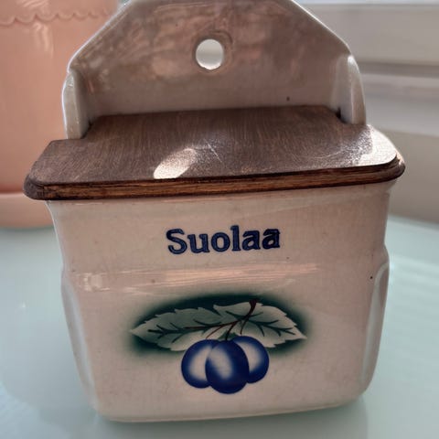 Arabia Luumu salkkari Jauhoja. Kannesta puuttuu sivuruuvit. Nouto Kellokoskelta.
