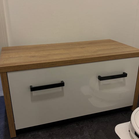 Kaunis kuultovalkea kenkäkaappi sopii eteistiloihin ja pieniin tiloihin. Valmistettu massiivimännystä. Kaapissa kaksi ylhäältä avattavaa jalkine tilaa, sekä ylhäällä pieni vetolaatikko.