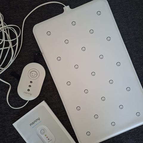 Toimiva Nanny kätkythälytin uuteen kotiin. Alusta sijoitetaan vauvan patjan alle. Laite antaa kuuluvan hälytyksen, mikäli vauvan hengitysväli muuttuu liian pitkäksi.