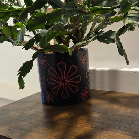 *Marraskuunkaktus, syyskaktus monta nimeä, tehnyt uusia kasvuja kaamoksessakin, kookas tuuhea, ostettu iso max-koko -24. Kukkinut uudelleen syksyllä fuxianpunaiset isot torvimaiset kukat.