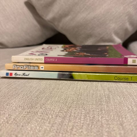 Lukion englannin kurssin kirjoja 4 kpl (In Touch 4, 5, 6 ja 7). Kaikki erinomaisessa kunnossa. Lisäksi kaupan päälle kirjoihin 1, 2 ja 8 liittyvät CD:t. Sopii hyvin myös englannin itseopiskeluun. Myynnissä Lohjalla, mutta kulkeutuvat tyttäreni mukana ilman postimaksuja Kamppiin, Espoon Ikealle ja Espoon keskukseen. Myynnissä myös muualla. Hp. 5 euroa/kpl