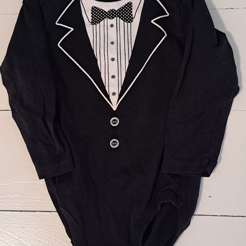 Lasten frakki, kokomerkintä 18-24m. Ollut meillä käytössä 1,5-vuotiaalla. Settiin kuuluu housut, paita, takki, frakkivyö ja rusetti.
