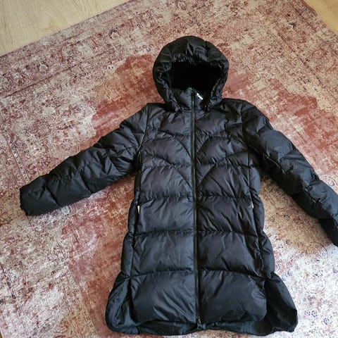 Muutamia kertoja päällä ollut Reiman "Vaanila"-toppatakki. Valitettavasti joku viilto tullut helman alareunaan taakse, se korjattu vaatelaastarilla. Muuten uutta vastaava kunto. En ole pessyt, ei ole ollut tarvetta. Laitan linkin vastaavaan tuotteeseen.