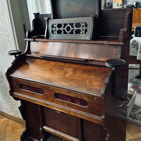 Ollut lähinnä koristekäytössä, mutta voi soitellakin. Poljettava. Helppo siirrellä, eikä paina paljoa.
