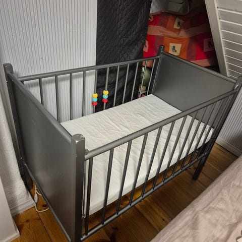 Näppärä pyörillä liikkuva vauvan pinnasänky. Siisti kunto, jämäkkä ja liikkuu moitteetta. Patjan saa mukaan, ollut käytössä ainoastaan vedenpitävän suojan alla.