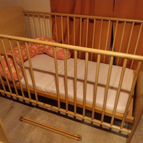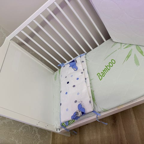 Kaupan päälle tulisi yhteen sopiva peitto, vauvan tyyny ja lakanat.