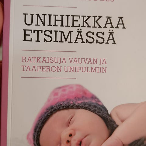Kovakantinen vauvan kirja Lähtölaskenta uneen. Pahviset sivut, joissa numerot ovat aukoista tunnusteltavaa kangasta ja viimeisellä sivulla nukkumatin tuudittamat pehmolelut ovat koristeellisen peitteen alla nukkumassa ja peite on samalla luukkukirjan luukku ja päällystetty samettimaisella kohokuvioidulla kankaalla. Myynnissä Lohjalla, mutta kulkeutuvat ilman postikuluja omien menojen mukaan ainakin Kamppiin ja Espoon Ikealle. Hp. 5 euroa