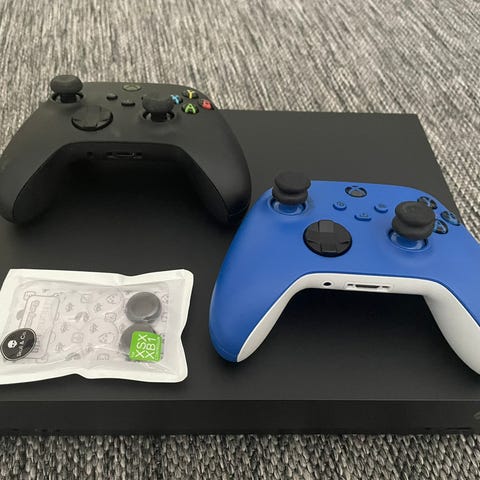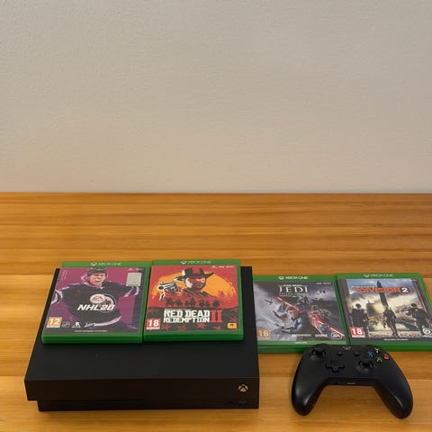 Myynnissä käyttämättömäksi jäänyt Xbox One X. Itse konsoli on fyysisesti hyvässä kunnossa, ohjaimen liipaisinpuolella aavistuksen kulumisen jälkeä. 1tb hdd ja laite alustettu tehdasasetuksiin, jotta käyttö jatkuisi "puhtaalta pöydältä". Levypelejä ei ole, vaan pelit ovat tulleet digitaalipuolelta.
