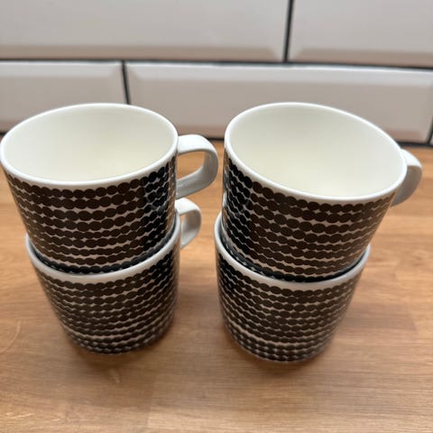 Marimekon keltaiset siirtolapuutarha mukit