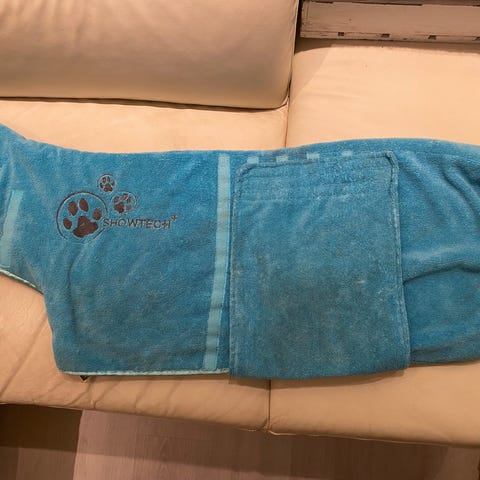 Myydään hyvä kuntoinen Showtech koiran kietaisupyyhe. Koko XS. Selän pituus 40 cm + kaulus. Käytetty pieni kokoisella westiellä. Kaula-aukkoa on hiukan jouduttu avaamaan. Nouto Kukkila, Hollola. Postitus onnistuu, kulut lisätään.