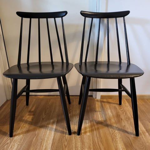 Neljä alkuperäistä Ilmari Tapiovaaran 40-luvulla suunnittelemaa Fanett- pinnatuolia.