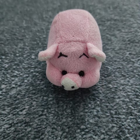 Hyväkuntoinen vaaleanpunainen possu avaimenperä. Tehnyt kuorsaavaa ääntä, paristokäyttöinen.