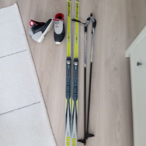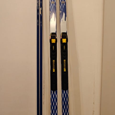 Siitä tulevan talven hiihtopoluille uuden veroinen suksipaketti seuraavalla. Sukset jäykkyydeltään 85-95kg kaverille. Säädettävät siteet.