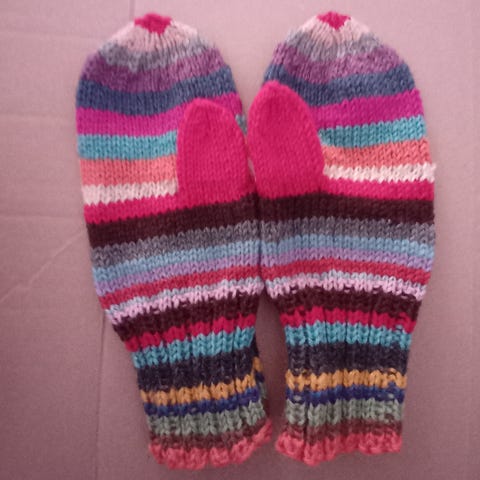 Handmade purple mittens with glitter decorations. Unused.
