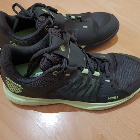 K-Swissin tenniskengät. Käytetty kaksi kertaa. Ovat valitettavasti itselleni liian suuret. Ostettu Münchenin Decathlonista hintaan 79,99€.