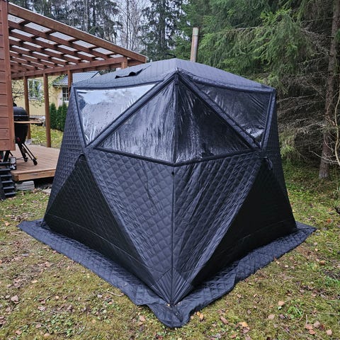 Sawu telttasauna on mitoitettu 3-4 saunojalle.