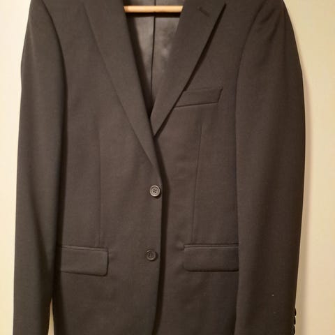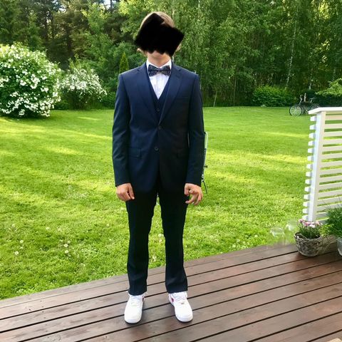 Dressmann poikien puku mustassa värissä, koko 44. Puku sisältää takin ja housut, slim fit -malli. Löytö joulun ja uuden vuoden juhliin!