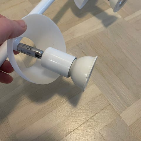 Valkoinen kattospotti, jossa on pyöreä kattokiinnike ja kolme sylinterinmuotoista, suunnattavaa valaisinpäätyä. Sopii yleis- tai kohdevalaistukseen esimerkiksi olohuoneeseen, keittiöön tai käytävään. Valonlähteet asennetaan valaisinpään sisään; tarkemmat tiedot kannasta ja tehosta riippuvat käytettävistä polttimoista.