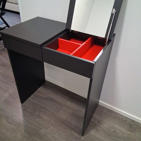 Hyväkuntoinen. Pieni nirhauma veto laatikon reunassa, mutta ei näy kuin avoinna ollessa.